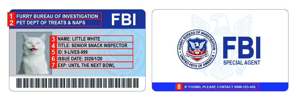 🕵️♂️ 擬真 FBI 寵物身分證 (趣味對照表)